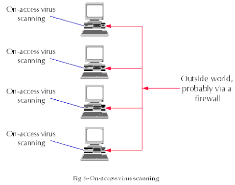 On-demand anti-virus software which can be used to check disks or files has limited use in a multi-PC environment connected to the outside world where there are so many easy and quick ways of introducing potentially infected objects into the trusted domain. The two main anti-virus techniques are successfully applied in such environments: virus-checking gateways and on-access virus scanning.